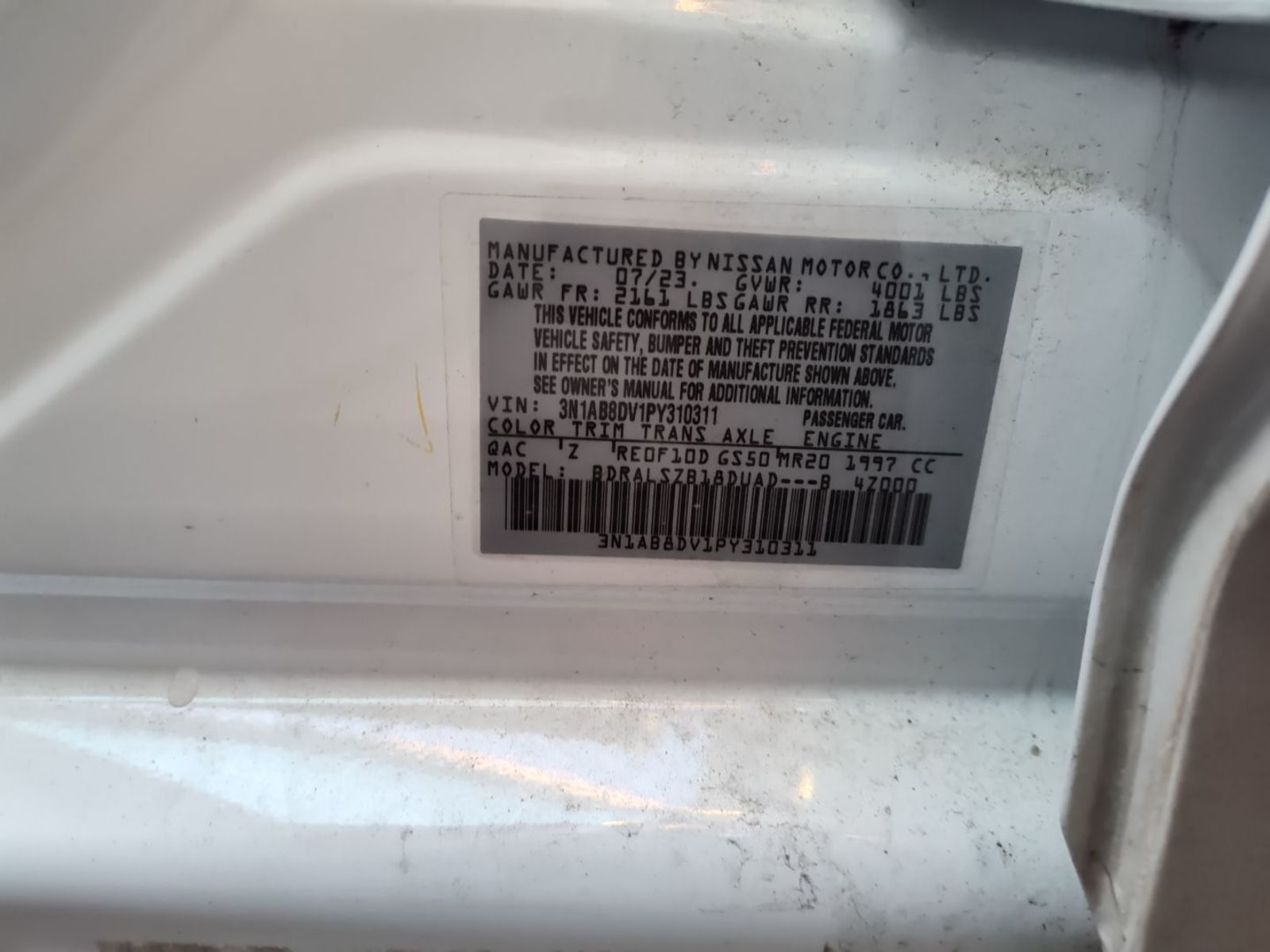 | VIN | 3N1AB8DV1PY* |