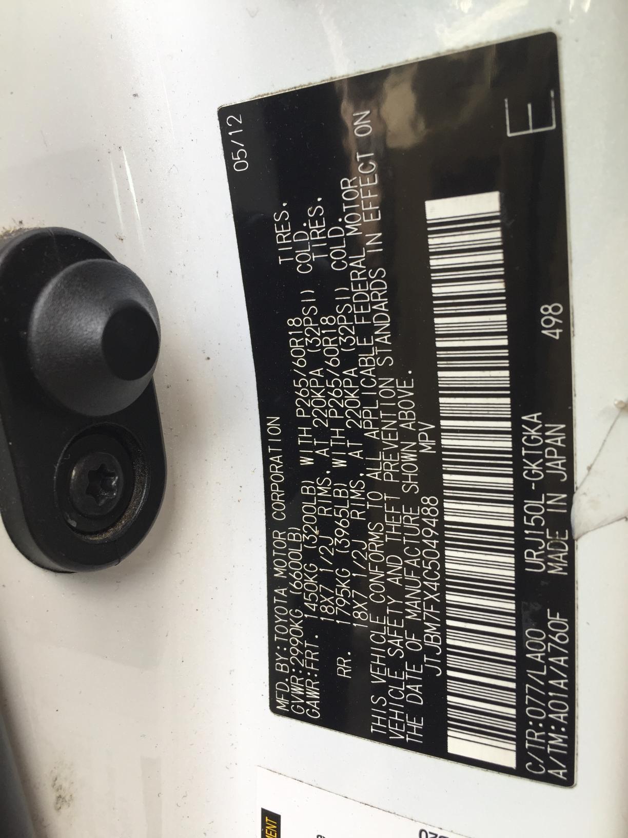 | VIN | JTJBM7FX4C5* |