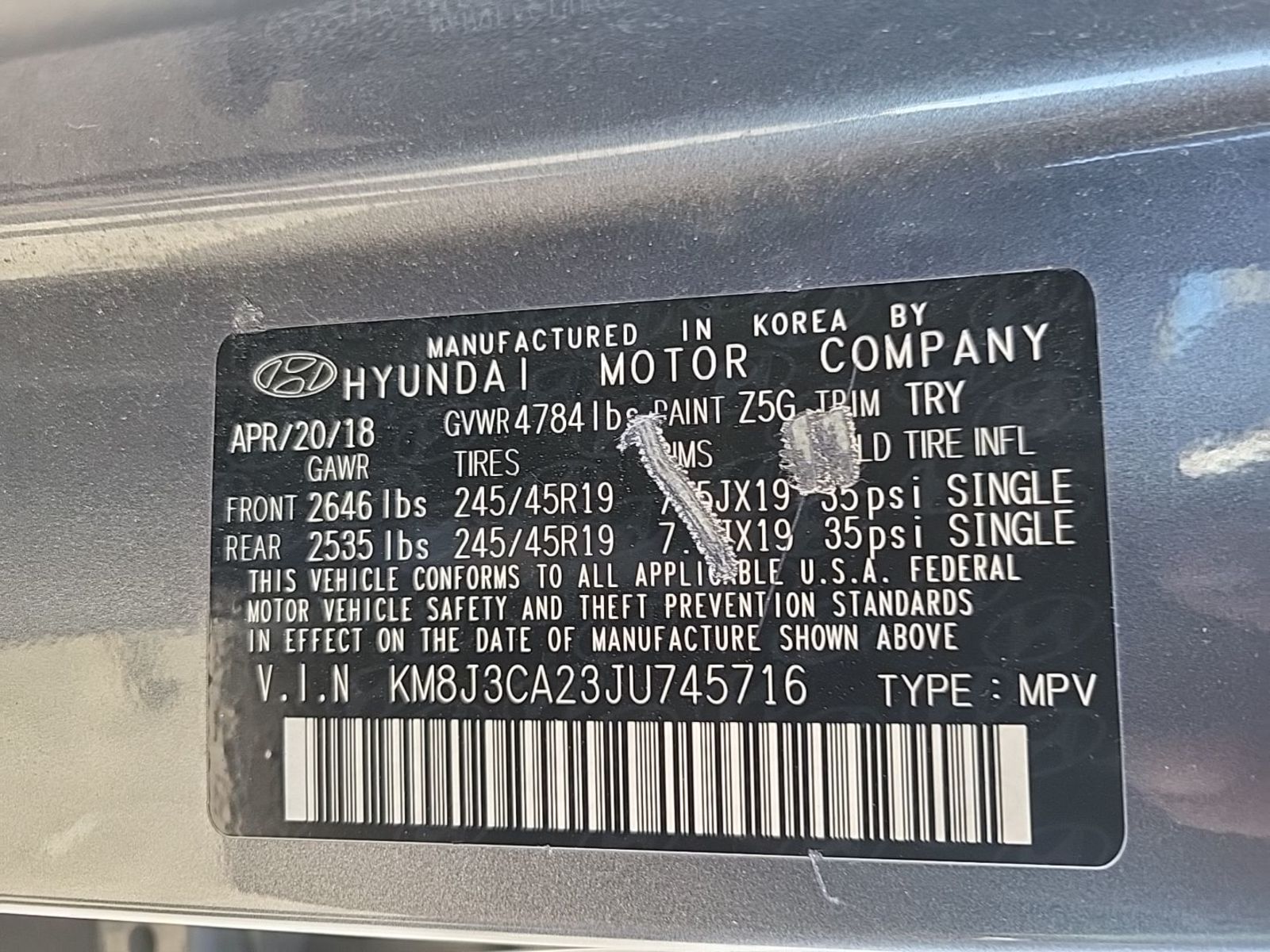 | VIN | KM8J3CA23JU* |